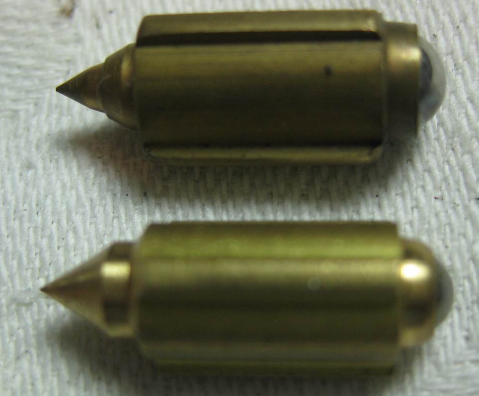 , верхний родной, нижний новодел, , на родном подпружиненый шарик гораздо больше по размеру! Кстати на родном это выработка, или так и должно быть
