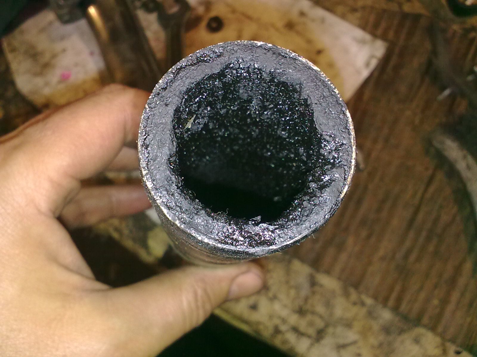 Та там, також такий стан колін та труб, що і викинути не гріх було б, та нехай власники самі шукають інші, мені важливо щоб після ремонту моторчик нормально запрацював, а з такою сажою гарної роботи годі і сподіватись. Поклади некорисних копалин.