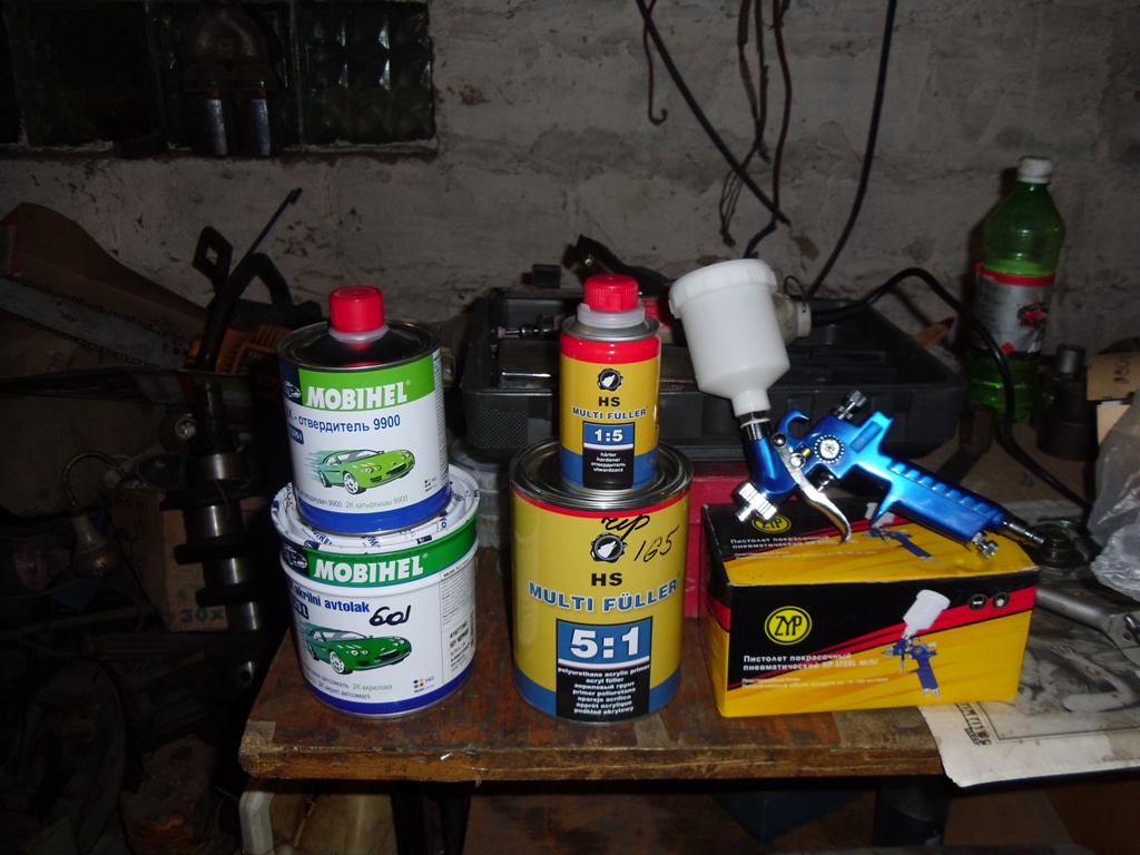 Готую чорні деталі до фарбування. Купив грунт і фарбу, дрібні деталі фарбую ось таким пістолетиком.
