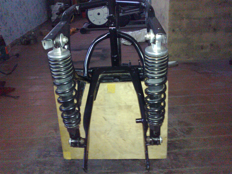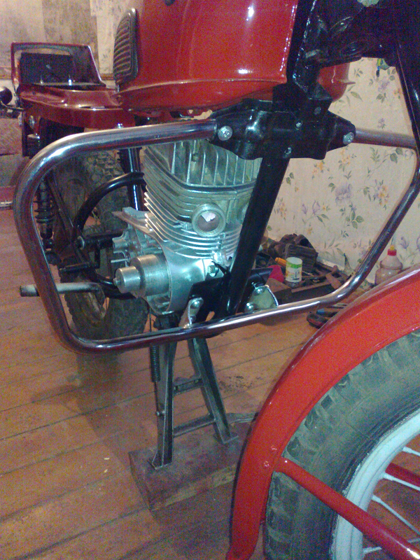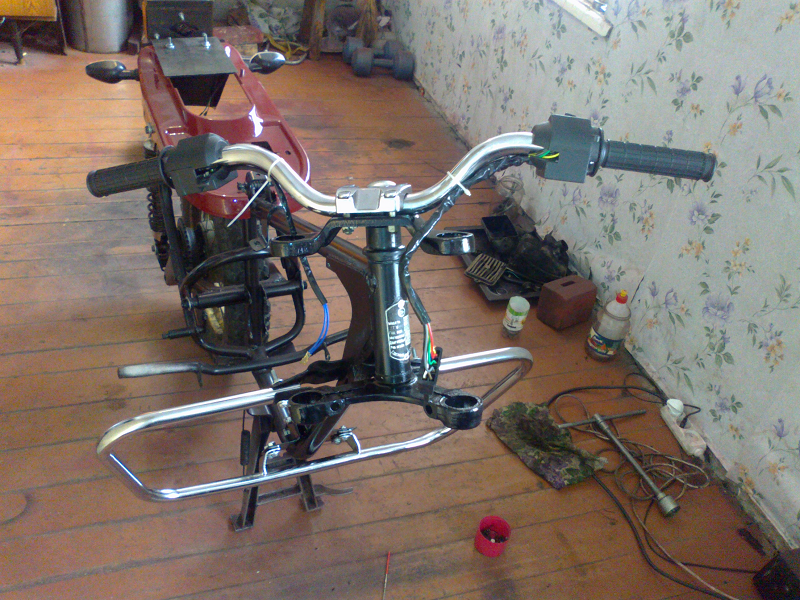 Передние дуги ,стопарь,пульты и ручки поставил явские, поваротники и амортизаторы от моей явы 640 , приборка от Альфы