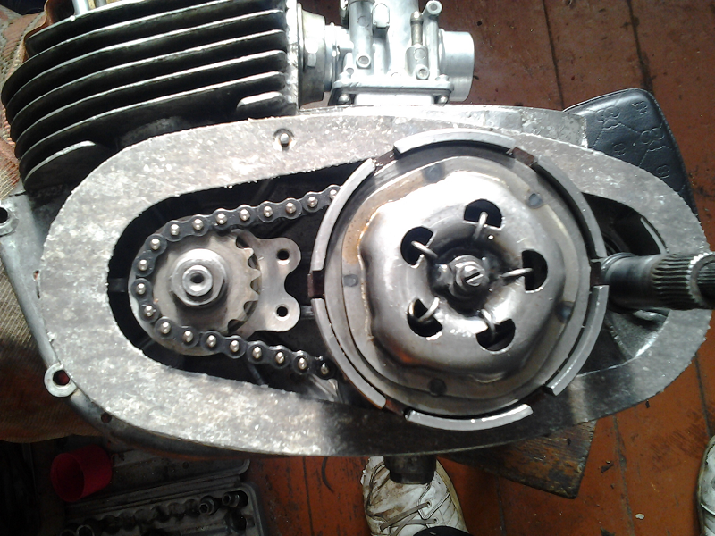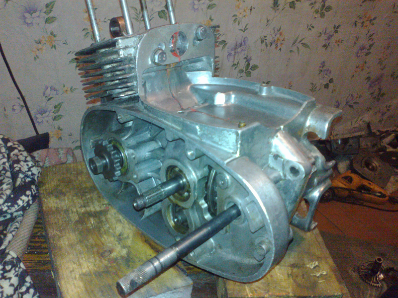 По двигателю сделал следующие.Расточил впускные окна,выхлоп,продувычные каналы ,подогнал впуск под Явский карб,Новый шатун,насыпные иглы и ролики в ВГШ и НГШ ,все новые подшипники двигателя, новые сальники двигателя,новая моторка,диски сцеплений.