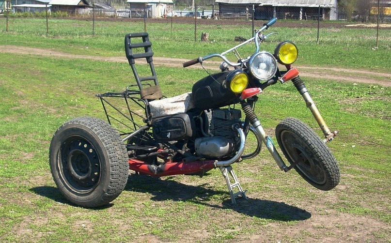 Я не много сомневаюсь что этот трицикл ездить может,мощей у Восхода маловато такие колеса крутить.