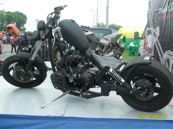 Этот последний матовый зря сюда добавили нормальный мот сделан со вкусом, видно что переделан на 12в, кпп днепр может даже 5ст на опозитах она вне конкуренции, карбы ява 12, дисковые тормоза. В общем вполне приличный мот.