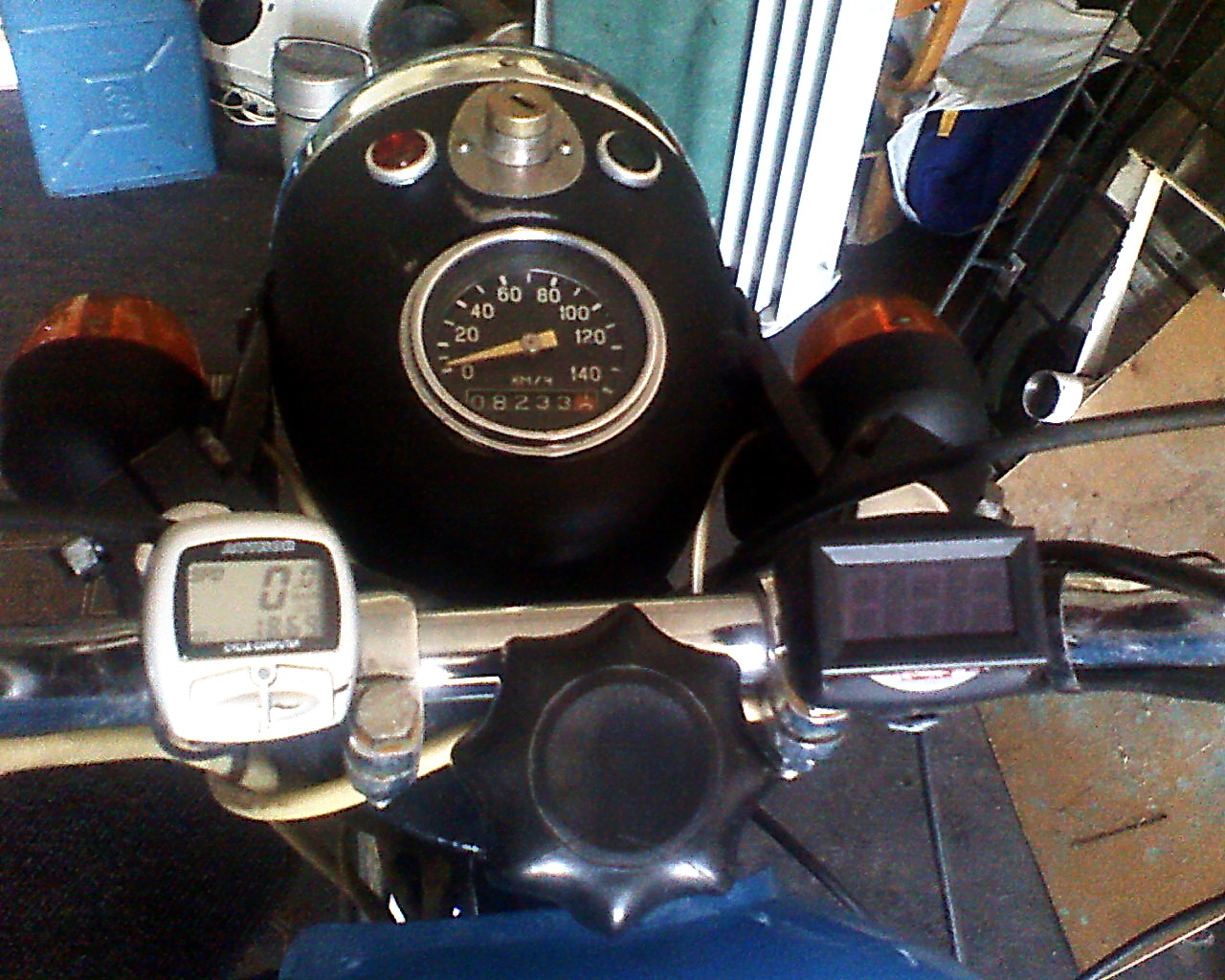 Вчера решил проверить максимальную скорость своего мотоцикла, выехал на трассу и попер. До 80км/ч легко, далее чуть тяжелее, но на показателе в 99.9км/ч велокомп остановился, не показывает он больше зараза. По ощущениям максимум до 110 разогнался и то почти слившись с мотоциклом, ну на сколько мои 110кг. могут слиться:-)