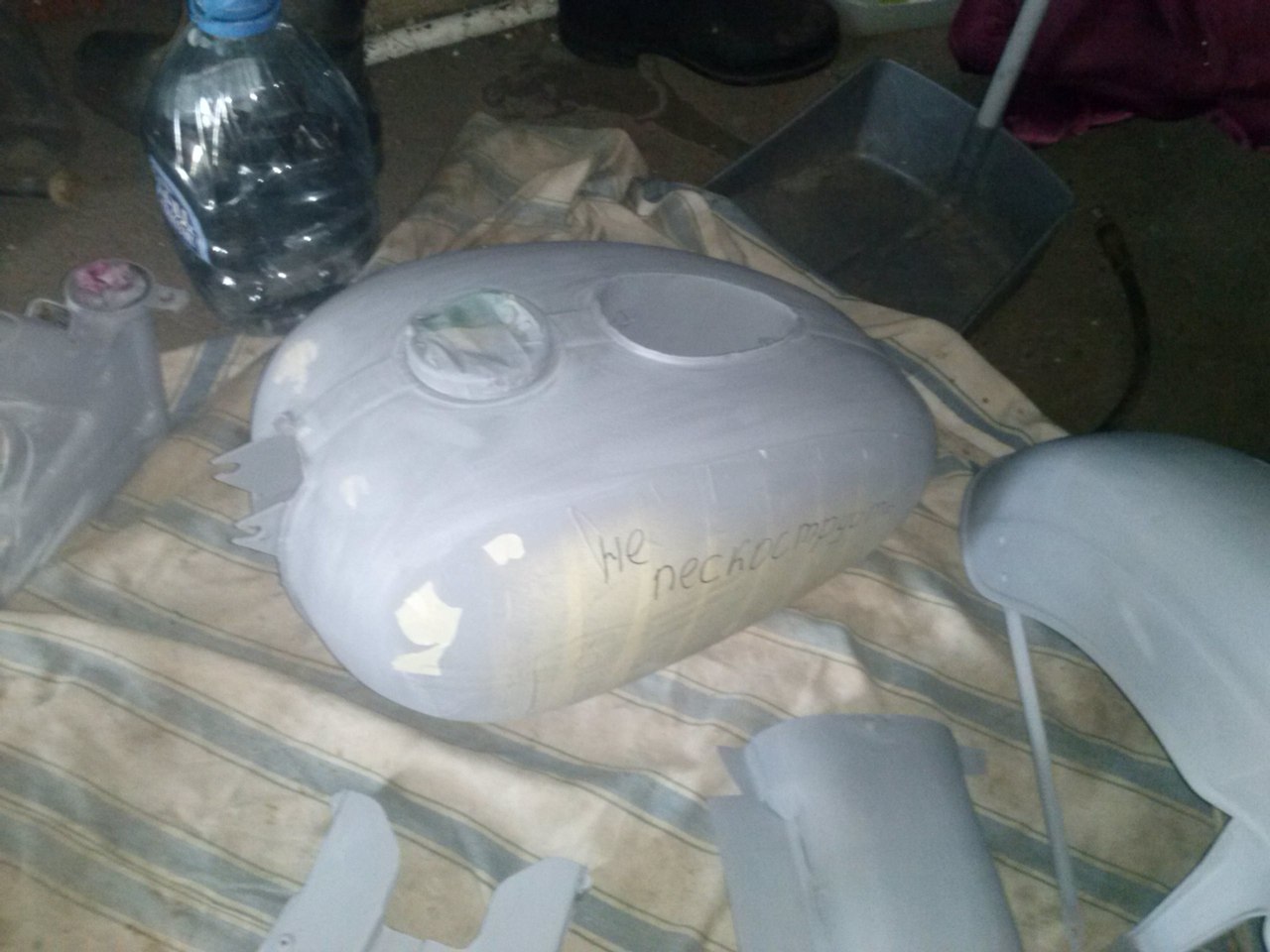 Первым делом были от пескоструины запчасти которые будут краситься и цинковаться , грунтонул [attachment=0]