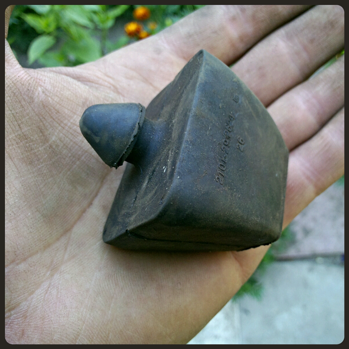 Нашел какойто демпфер, толи от жигуля, толи от прицепа. Вырезал заглушку и забил в отверстие, налил масло в коробку и вуаля ничего не тичет.