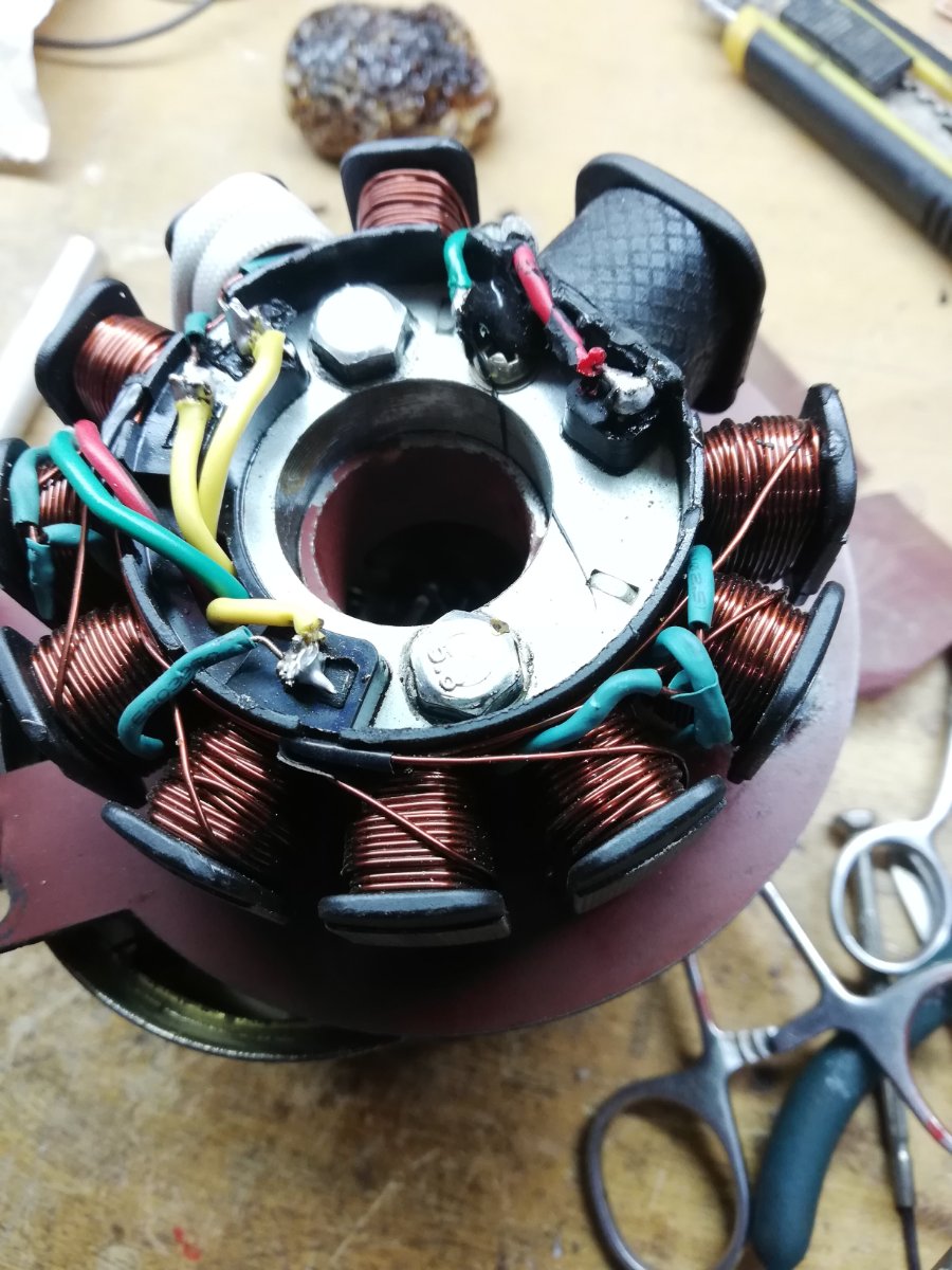 Культура изготовления статора жлобская, множественные нахлесты лакопровода от разных катушек без дополнительной изоляции. Остается надеятся на качественный китайский лак в условиях постоянного перепада температуры и вибрации, или изоляцию доработать.