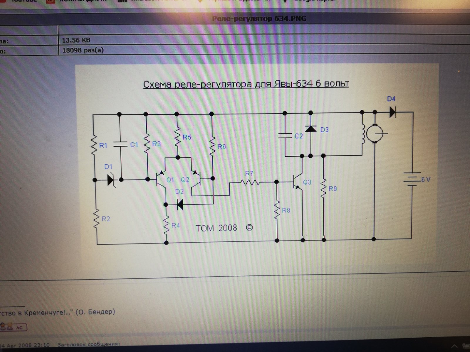 В этом году мне предстоит ездить на родном 6 В зажигании с контактами, но в замен родному реле-регулятору начал делать электронное.