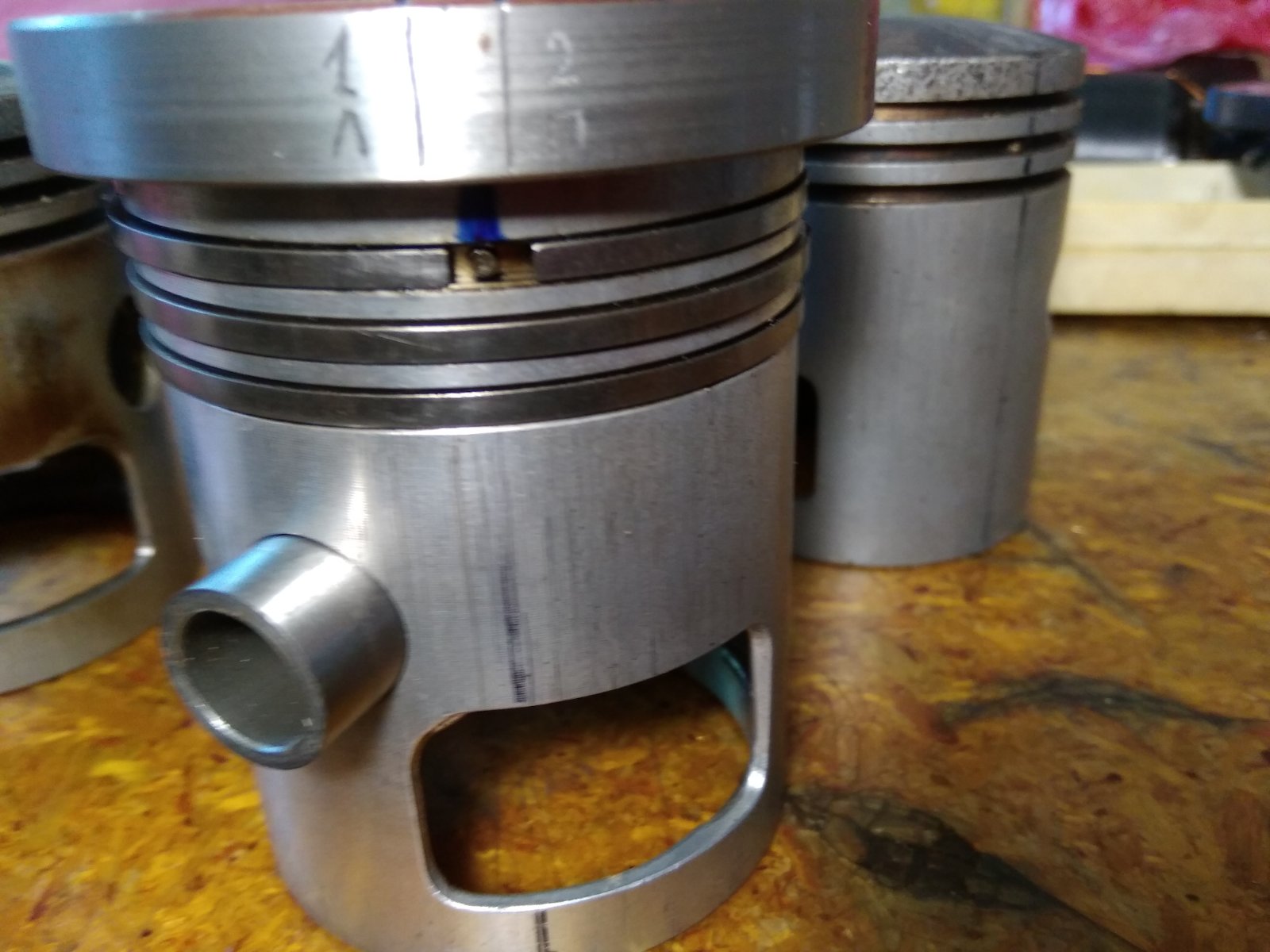 Траплялися такі у кількох прибувших на ремонт двигунах. Мали величезні прихвати і на якомусь комплекті дуже розтовчені посадки пальців у бобишках. Ніколи такі поршні у якості ремонтного комплекту не використовував.А что за стремные поршня???