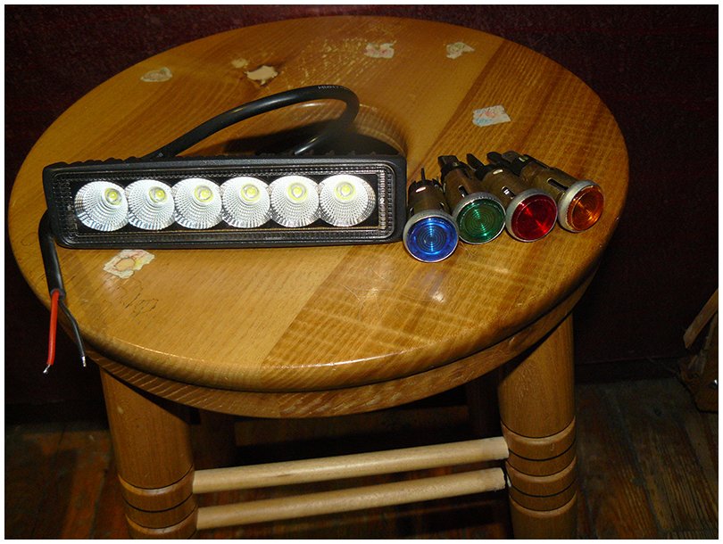 Дождался ништяков, можно приступать :) Набор тракторных светлячков и небольшой габаритный фонарик, который хотел повесить под Тигером :) Ну, по задумке - в итоге оказалось, что этот фонарик фигачит будь здоров, что-то я по фотке недооценил его мощу и размеры. Видимо, это будет уже полноценная допфара с отдельной кнопкой :?