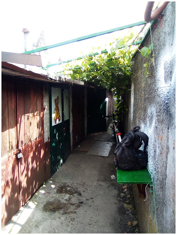 Сарайчик наш примерно посередине длинного ряда, идущего у самого забора кооператива. Там, в общем-то, все такие сарайчики, чисто мотоциклетный ряд, хотя некоторые каморки вообще наводят на мысль о велосипедном гараже :)