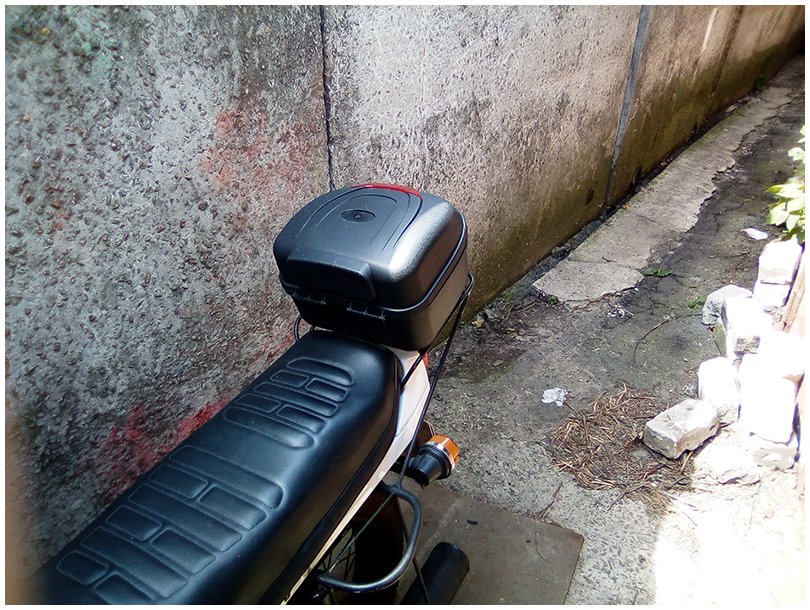Ну, хватит о грустном - получили еще одну обновку :) Давно к этим штукам присматривался, но они мне как-то не нравились, большие и аляповатые какие-то. А тут на днях увидел на улице на мопедке небольшой и аккуратный сабж без всяких изысков, думаю, себе тоже хочу :lol: Нашел его в интернетах и заказал. Надо, правда, еще собрать сам этот конструктор, который почему-то присылается в разобранном до винтика состоянии, и с креплением разобраться.