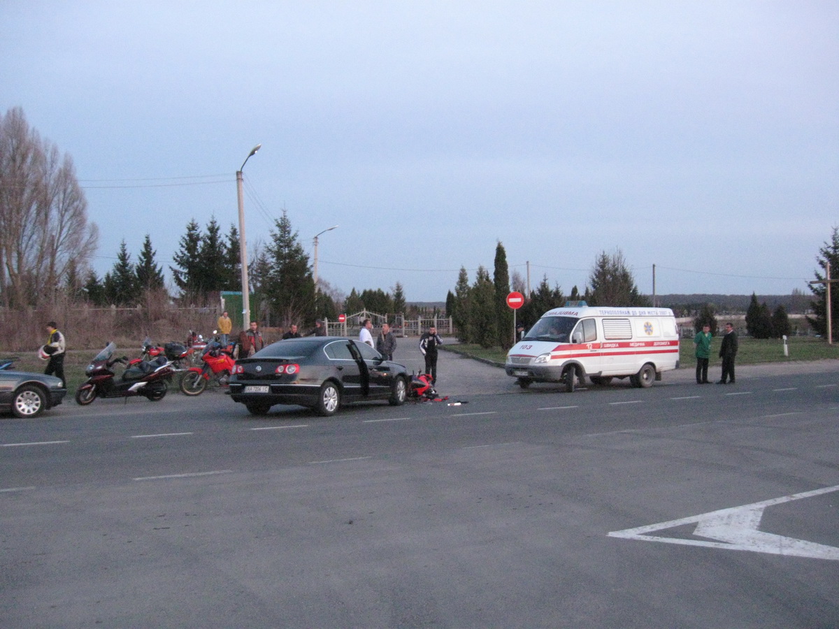 !Повезло шо їхали не скоро і Ігор(пострадавший) не зазнав значних травм,але все ж таки,попав в лікарню і всі свята проведе там!В нас це вже 2га аварія за тиждень по одному сценарію,зустрічна машина повертає прямо перед мотоциклом,містично не бачучи мотоцикла з включеним дальнім світлом!Будьте обережні друзі!В наш час замало надіятись тільки на себе!