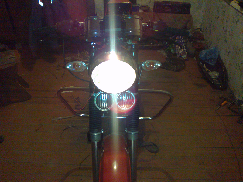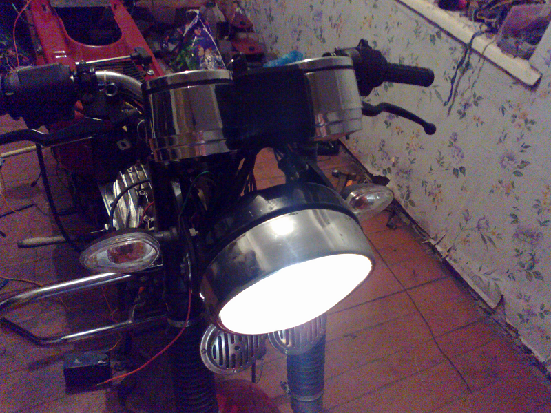 Всем рокерам Привет! сегодня сделал освещение на мотоцикле от аккума горит все отлично ближний, дальний, задний габарит.Сигналы подключил.сигналят :super: Ключ зажигания подсоединил,ДвигСтоп сделал.