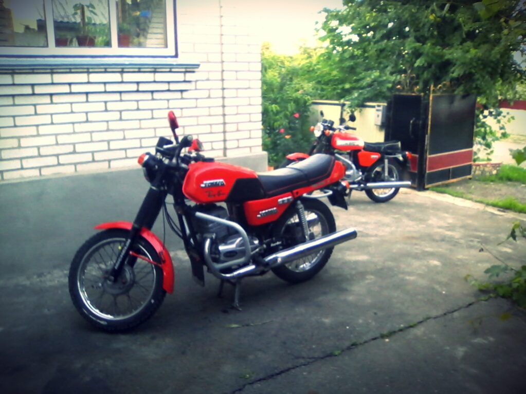 Всім привіт сезон відкритий давно Ява почуває себе чудово піся зими тільки дуги облізли передні але вже виправлено все. Був не великий пробіг з друзями на річку мотоцикол не підвів довіз додому. Також назбиравши гроші було зроблено повністю поршньову з норми на 2 ремонт зараз проводжу обкатку моторчик тільки і шепочить )))