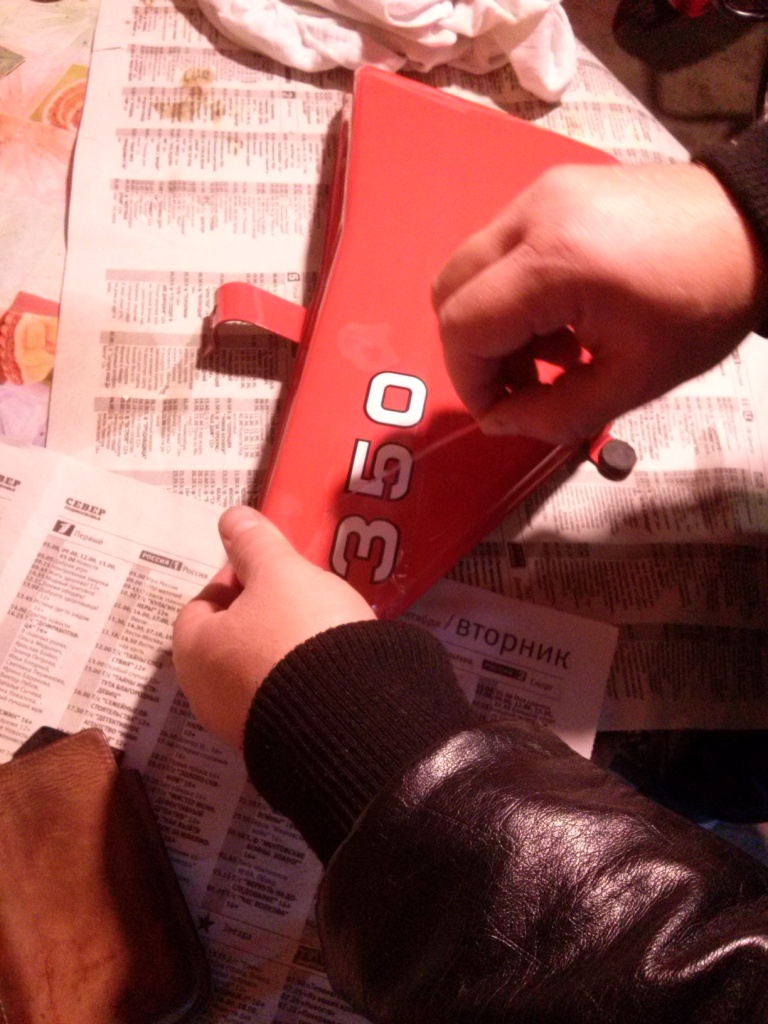 Надпись 350 лучше бы смотрелось, если наклеить немного выше, ближе к средине (т.е. не на ребре, как на фото).