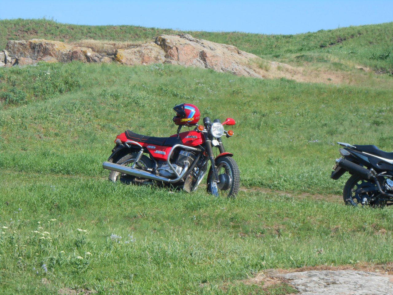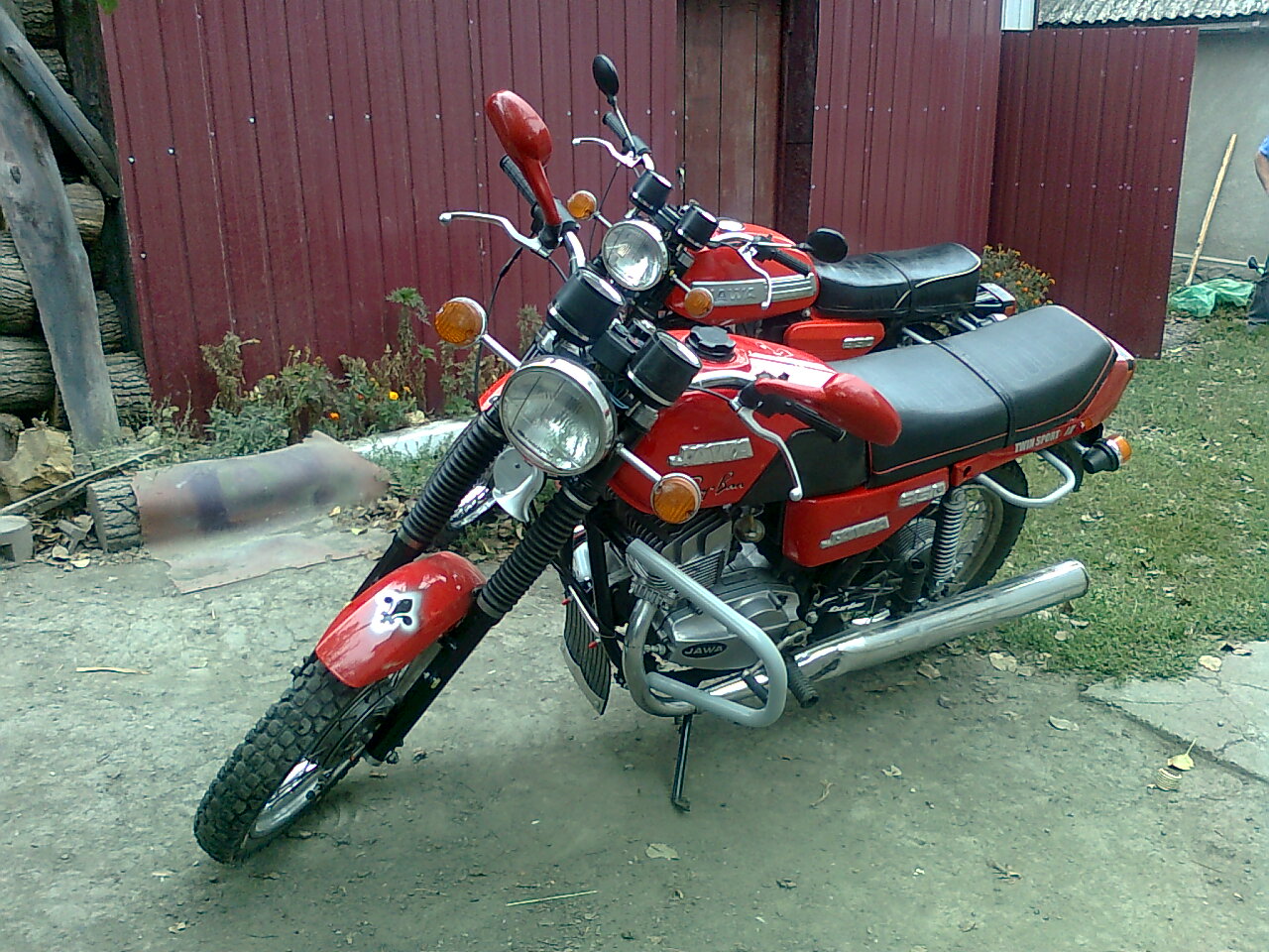 Всім привіт сезон відкритий давно Ява почуває себе чудово піся зими тільки дуги облізли передні але вже виправлено все. Був не великий пробіг з друзями на річку мотоцикол не підвів довіз додому. Також назбиравши гроші було зроблено повністю поршньову з норми на 2 ремонт зараз проводжу обкатку моторчик тільки і шепочить )))
