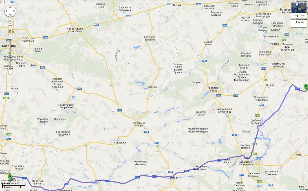 По совету отца искал короткую дорогу через Сквиру - Белую Церковь, уперся в брущатку, послал все подальше и поехал по провереной.