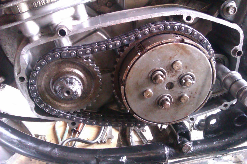 Цепь на 638 двиге, все же можно заменить, не снимая звезду. Нужно прокручивать двигатель, заправляя наискосок, сначала один ряд цепи а потом второй.