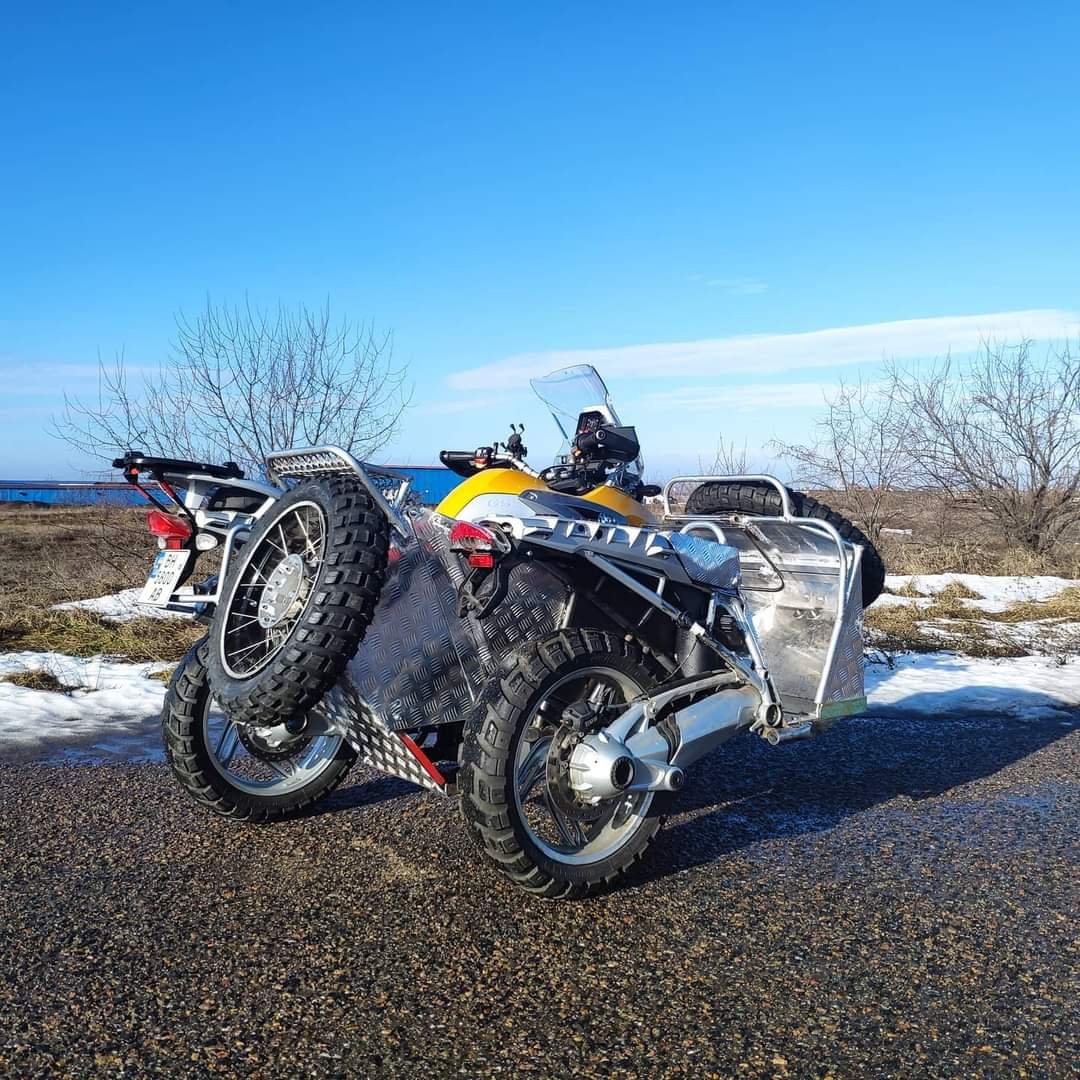 Да, он участвует в БМВ ралли. Раньше ехал бусом, мот тащил за собой на прицепе. В этом году поедет на мотоцикле с коляской. На самой коляске закреплены два колеса с боевой резиной и на спицах. На месте ралли отцепляет коляску, меняет колеса и газу