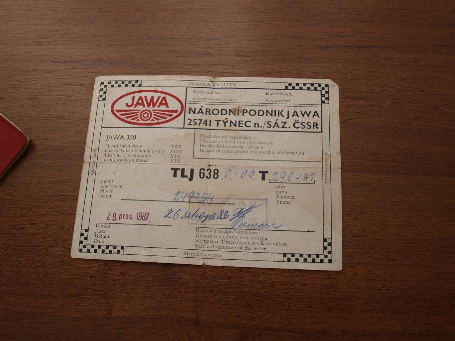 - Мотоцикл: JAWA 638