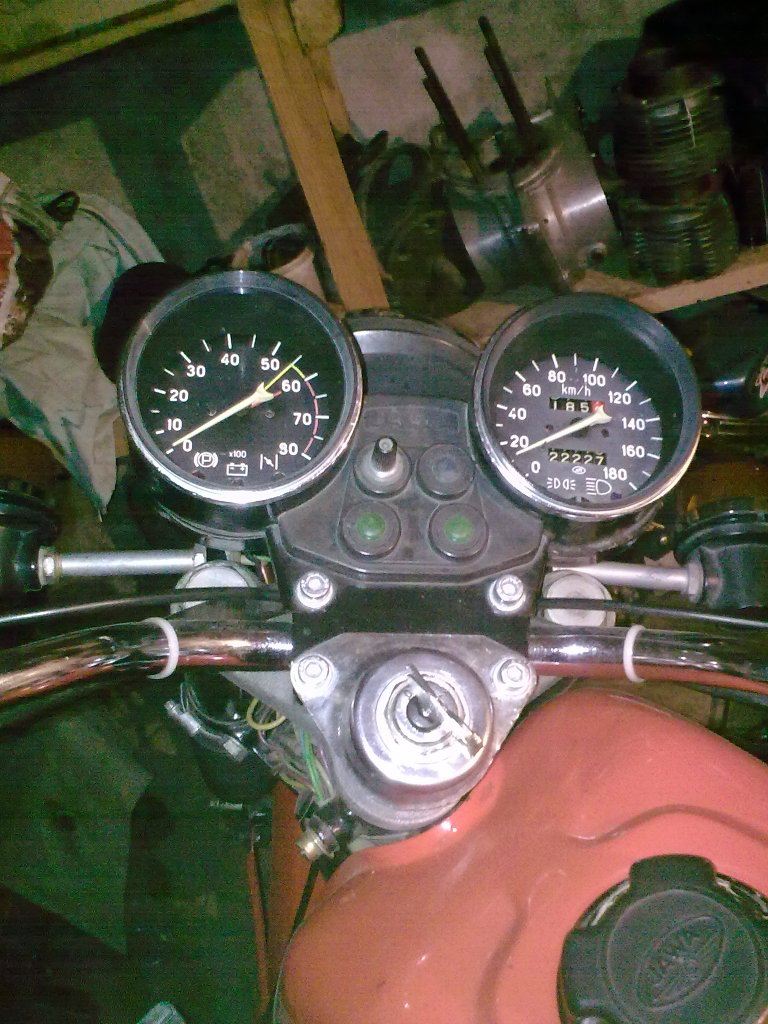 Про подшипник подумал, что если он мертвый, то мертвее ему не быть, а коль развалится то и х.. с ним! Завел... А вот тут остановлюсь: всегда заводилась с пол-тычка, а тут еле еле... раз 20 дергал... шо за нафиг... :shothead: мож бензин (залитый еще в марте :sotona: ) мож аккум, заряженый тогдаже! ... завел, значит... ну есть звук подшипника. Проехал я километров 10... нету звука! :100: Зато успела сплясать последний предсмертный танец стрелка тахометра и померла смертью позорной! Поскольку кроме немного рывковой работы оно еще и некисло обдавало мои штанишки маслицем с коробки (как я не полировал этот злощасный вал... эх...) давно задумывался поставить нормальный электронный тахометр!