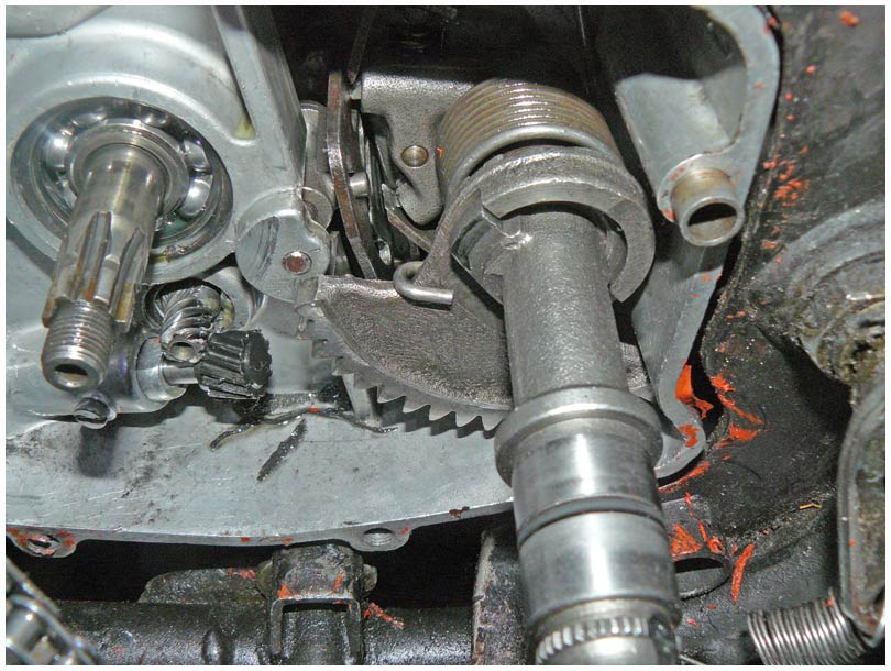 Мне кажется или между подшипником и стопорным кольцом есть зазор?Если есть зазор то подшипник с валом ушёл во внутрь.Спидометр не работает потому что шестерня спидометра не входит в зацепление с червячной частью вала.Нужно на своё место поставить и будет работать.