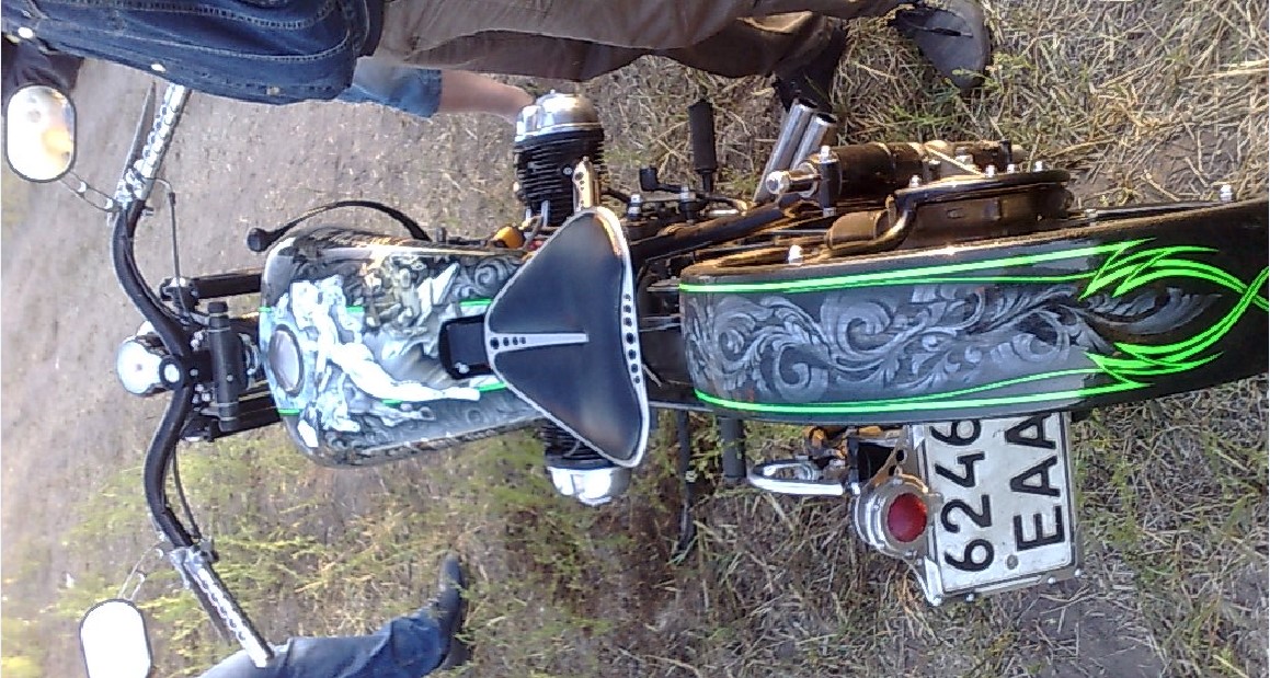 Вот интересный экземпляр - закос под мотоцикл 2-й мировой. Немного тюненая "кувалда": И как же без китайчика! Российской сборки, закос под суперспорт. 250 кубиков и 1 цилиндр, хоть тормоза правильные радуют.