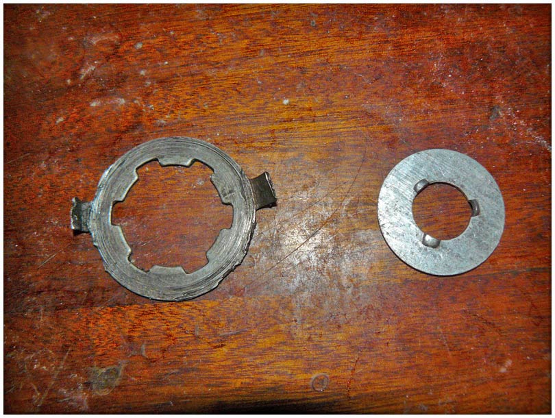 Интересно, что вместе с этой шайбой попала ко мне в руки другая шайба, под гайку корзины. Имеющая "корончатую" форму наподобие шайбы со звезды с правой стороны. Есть и обычные круглые с тремя пупырышками