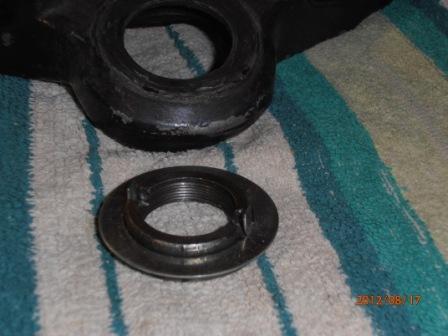 Сначала ставишь нижнюю траверсу прикручиваешь гайкой той что с двумя пазами, потом одеваешь верхнюю траверсу и на ней шайбу усиками вниз что бы усики попали в пазы. И закручиваешь верхнюю гайку та что вроде под ключ 36 или 42.. и контриш шайбу с одной стороны об гайку а с другой пробойником в выемку в траверсе. Вот и все)))