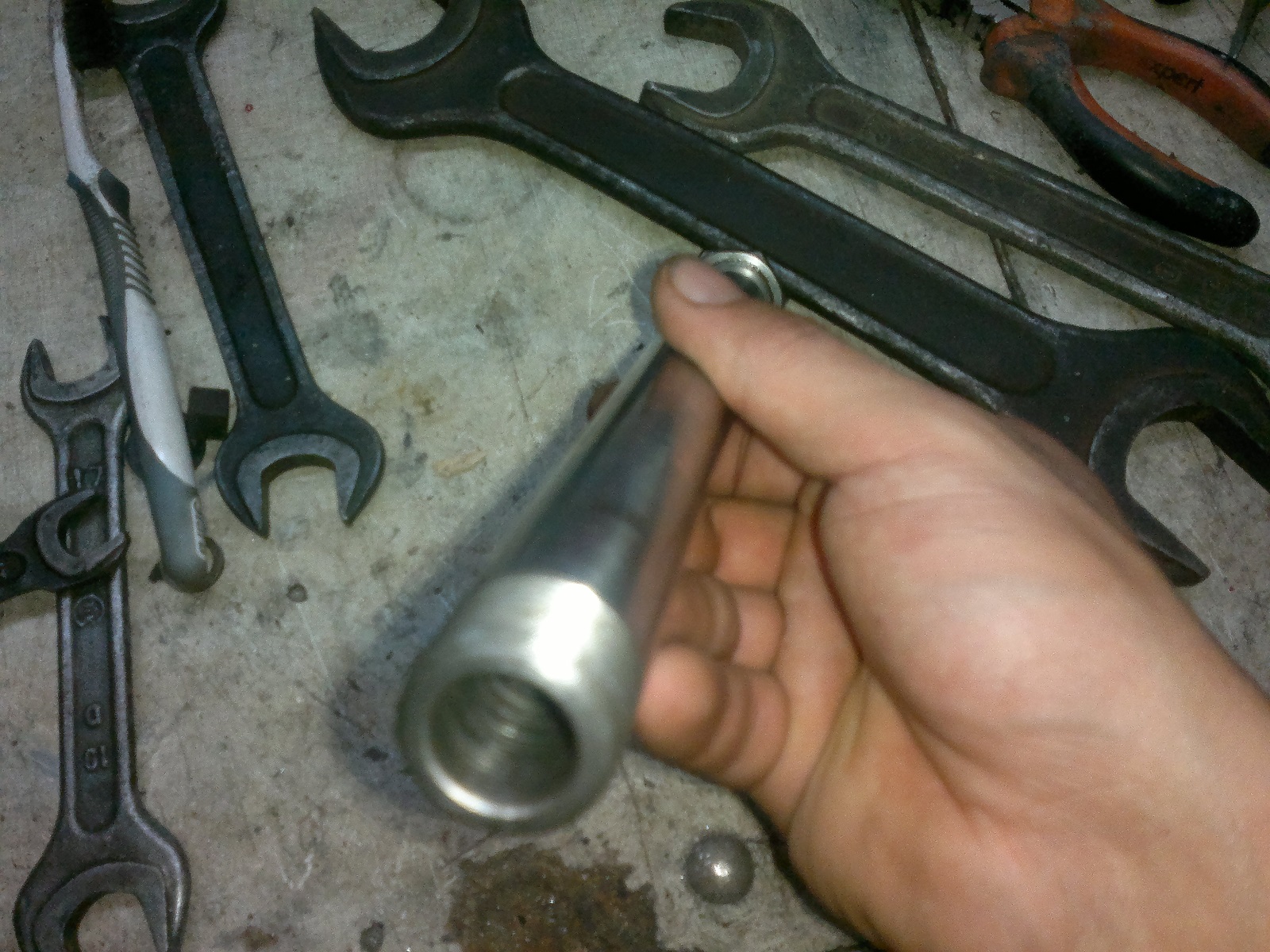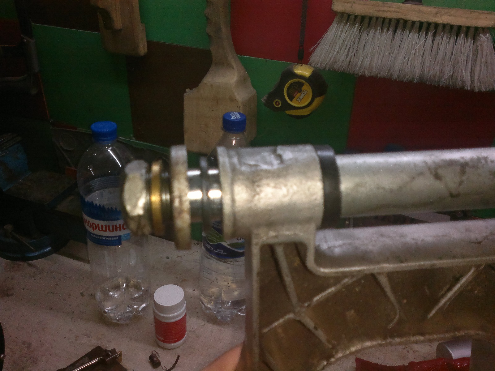 Всем зрасьте!Зазобрал наконец-то маятник(самому было интересно).Вобщем, ось самодел с авто стойки аммортизатора(Спасибо lelikу)Токарь нарезал резьбу,сделал отверстие под тормозной вал...сам же райбером увеличил отверстия в ушах маятника до 28мм,под игольчатый подшипник(NTN),в каждом ухе стоит по два штуки.Между ушами стоит трубка-проставка,на концах сальники с ИЖа(вроде с генератора).Середина изолирована))Между рамой и маятником пришлось ставить дополнительные шайбы,родной маятник шире чезовского...вырезал со старых бронзовых втулок...парочка резиновых колец и готово!Ставил сначала маслёнки...по месту выяснилось,что с правой стороны цепь трёт о маслёнку,да и подбираться смазывать проблематично...пришлось крепить кусок резины между цепью и маятником уже без маслёнок.Переделка работает! :super: Испытывали с женой в "эндуро" условиях,проехали 646 км на новой оси и следов работы нет!Смазка своеобразная...разогреваем Литол до жидкого состояния,набираем в металлический шприц и через родные дырочки в маятнике(сверху ушей) вливаем,пока не полезет с щелей.При разборке смазки ещё было достаточно,поэтому решил смазывать через 1500км-кашу маслом не испортишь!)))Фото с телефона,за качество сорри.