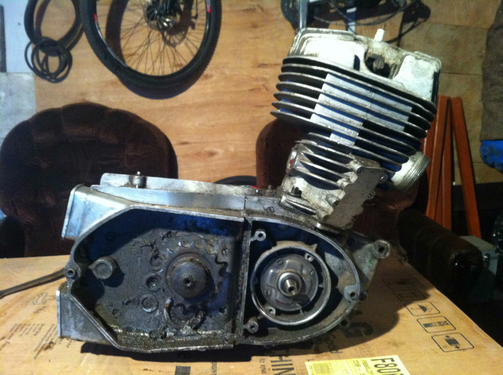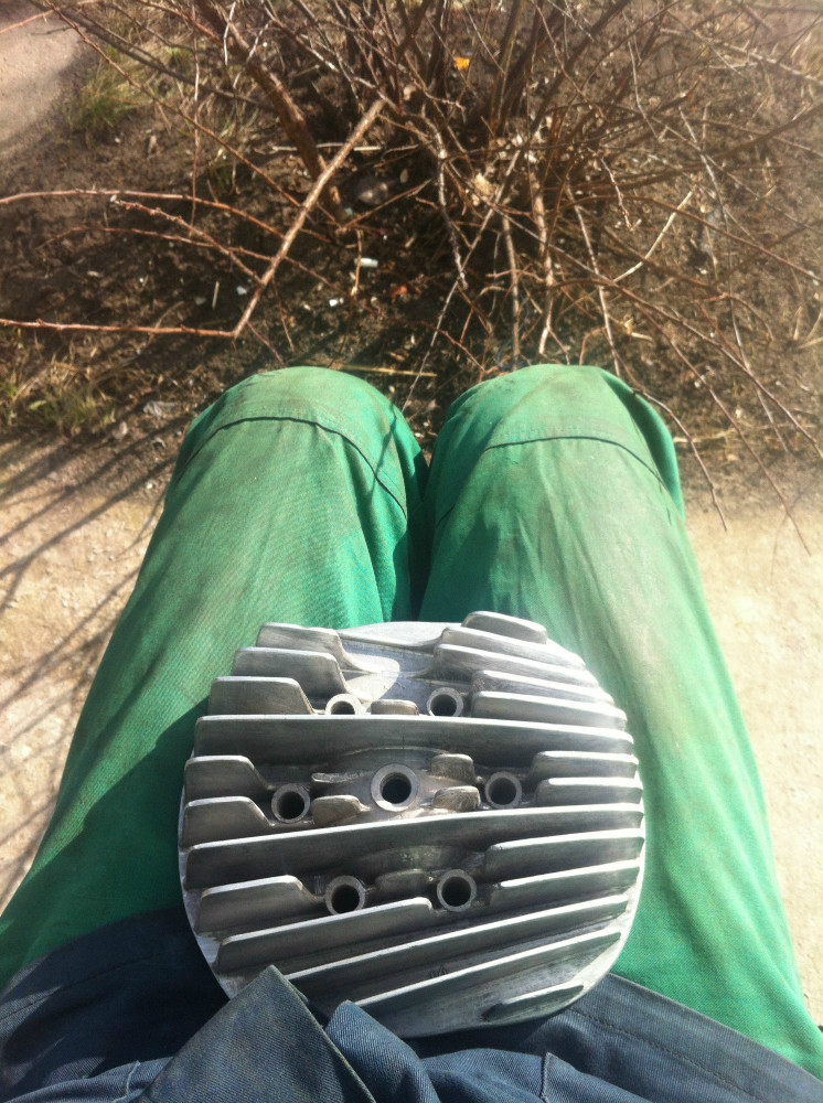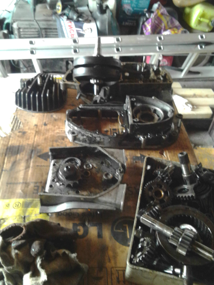 циліндр,головка циліндра була пофарбована серебрянкою поверх болота, піскоструй брати не хотів, тому це все діло наждачками(Головку геть на роботу брав :) ), шпателями, ножиками чистив, шліфував, а в кінці все відпіскоструїв, не забувши і про картер)