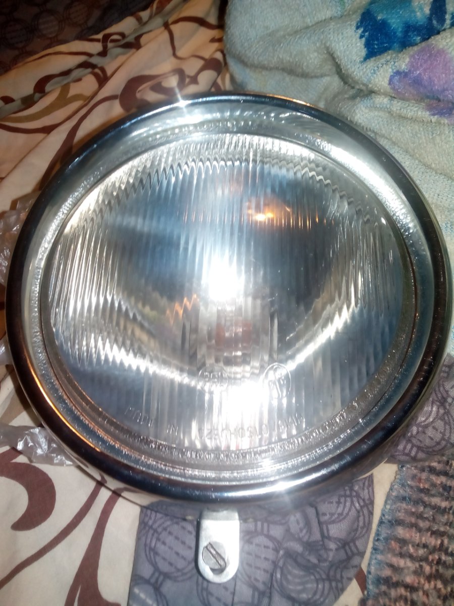 фара ,це герметична штуковина. на фото ультра стара фара. але все це щястя повинно ставитися в будь яку явську параболу без проблем. контакти такі як кнопки\застібки на одежі. можна замінити на сучасний "патрон"для лампочки.