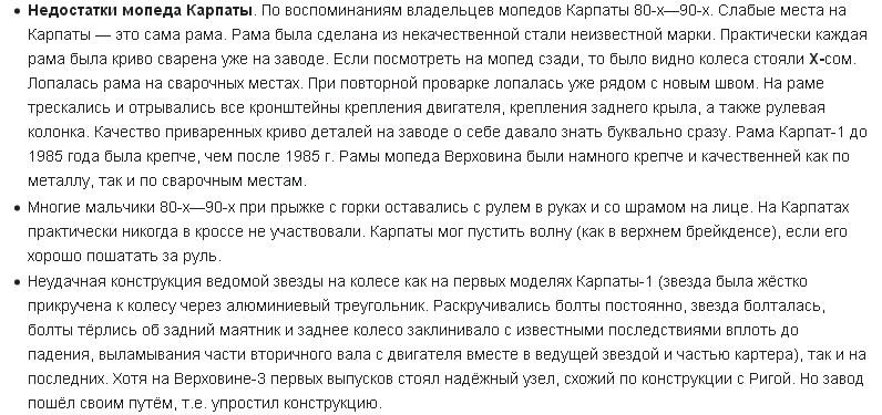 У меня была верховина—4. Стояла у соседа на чердаке, там что-то коротнуло—крыша сгорела вместе с мопедом. Вообщем мне досталась кучка гари без колес. Ничего—восстановили мы его с батей—коленвал перепрессовали в домашних условиях.., раму покрасили цвэтом босфор, запы б/у что подешевле брали на местном моторынке, колеса помню переспицовывал сам, красил обода белой краской—это был мой первый проэкт по восстановлению. Долго с ним мучался—внешний вид вылизал в идеал а вот двигатель восстановить тогда ума не хватило—коленвал подклинивал после нескольких тактов работы двига. Психанул и продал. Долго потом жалел.. Эх, как давно это было...