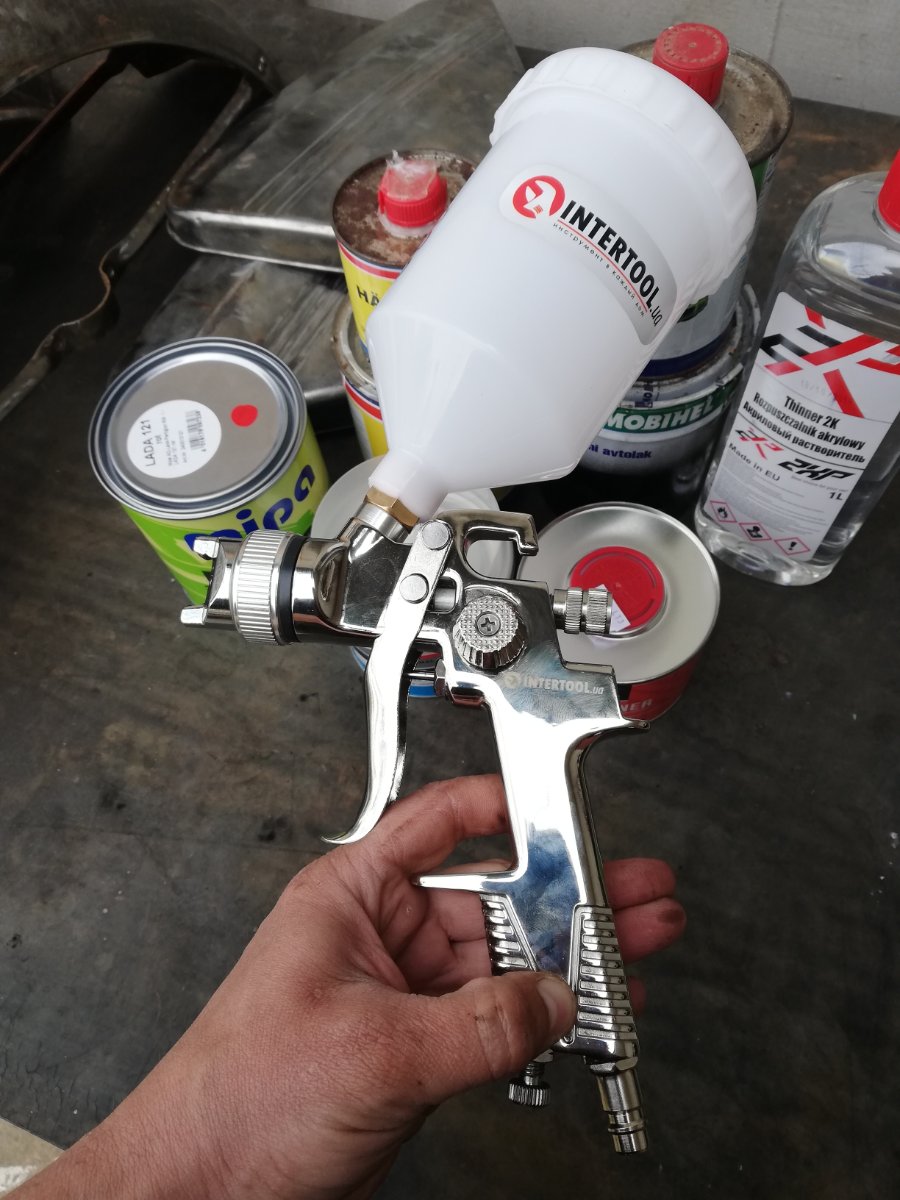 Старый пульман оставлю под грунт. Для краски взял не дорогой Интертул HVLP 1,3 мм, для мелкогаражных работ его хватает.