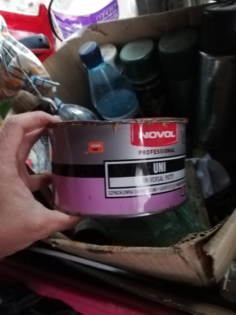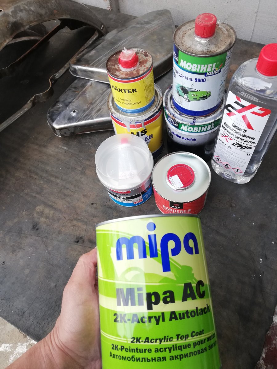 Выбор остановился на красной Mipa 121 номер, черная Мобишел (было в наличии пол банки), грунт Fuller HS, шпатлевка Novol Fiber.