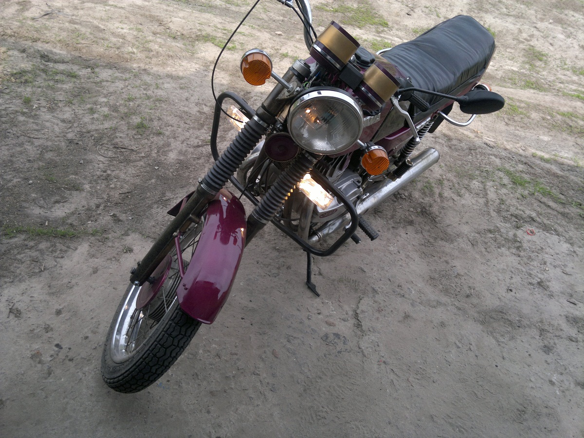 До ремонта на ней можно было проехать только толкая перед собой и матерясь. На даный момент в моем городе красивее этой только одна она почти не ездит, просто есть для того чтобы пылинки сдувать, а у меня чтобы ездить. 634 будет с другим оттенком красного не 121 по причине гадостности теперешнего садолина, а колотить не хочу потому, что при малейшей царапине весь мотоцикл перекрашивать. Да и запчасти некоторые хрен найдешь
