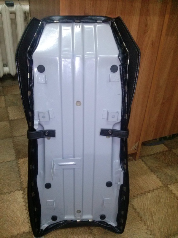 Основание сидения крашено порошковой краской соответственно перед этим было отпескоструено, чехол сидения от Александра Кононенко, единственное ремешок пасажира без крючка зацепа, пришлось заказать с Питера!!!! Судите сами но мне кажется он не в тему. Единственное что можно попробовать переклепать зацепы на Сашкин ремешок.