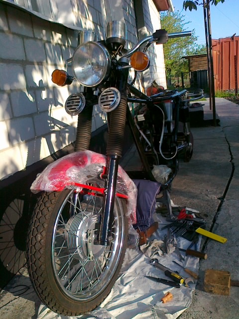 Червоне покищо тільки погрунтовале, та ще й бак перешпаклювать доведеться: попідривало місцями (хз чим воно було фарбоване...) Покищо десь так...