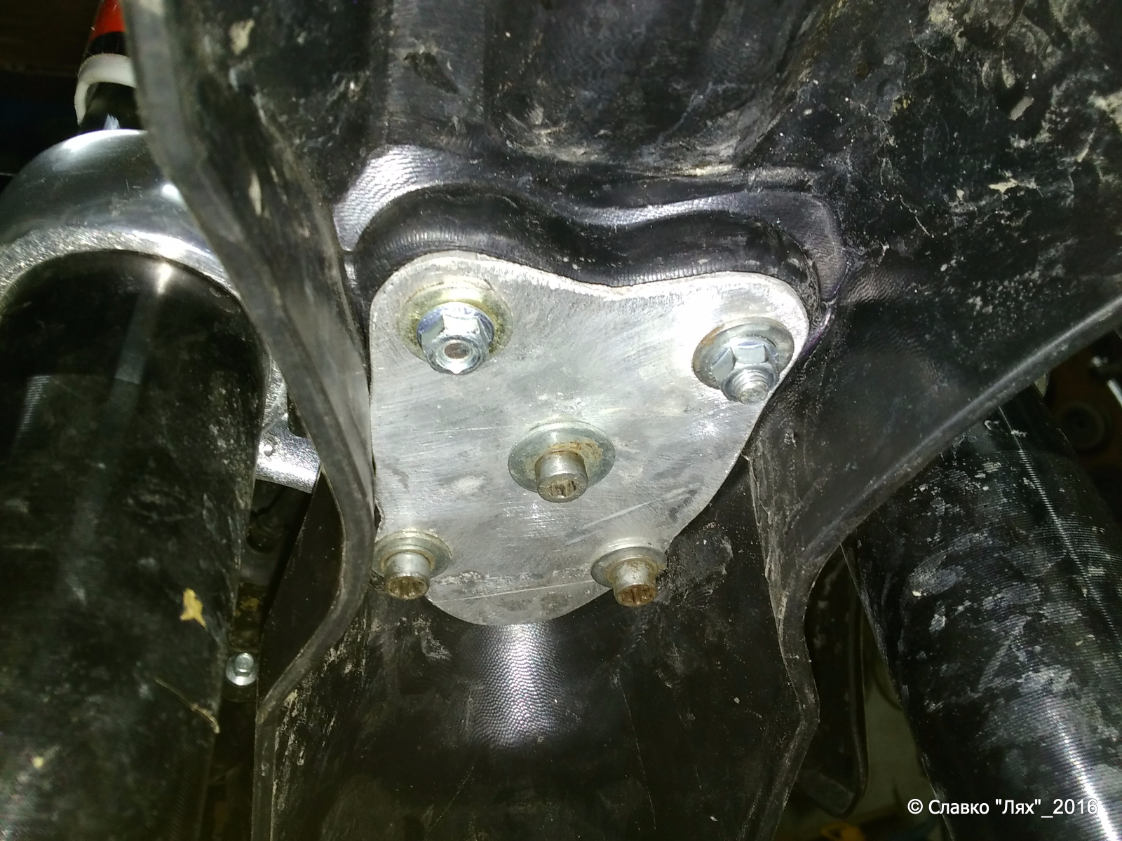 Зробив дві пластини під болти, що тримають захист передньої вилки, щоб тими ж болтами не продавлювався пластик.
