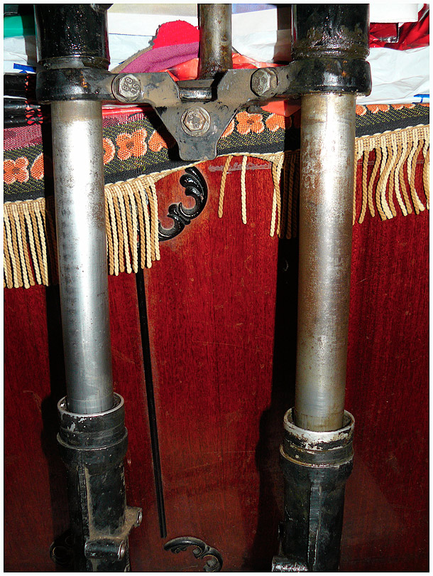 На самом деле найти хорошую 638 вилку очень и очень проблемно :( Отсутствие какого бы то ни было гальванического покрытия на несущих трубах привело к тому что б/у не ржавая вилка это из области фантастики. Долго и нудно искал себе два пера, которые можно было бы отполировать до зеркала - большинство из тех что продавались не годились вообще ни на что :banghead: