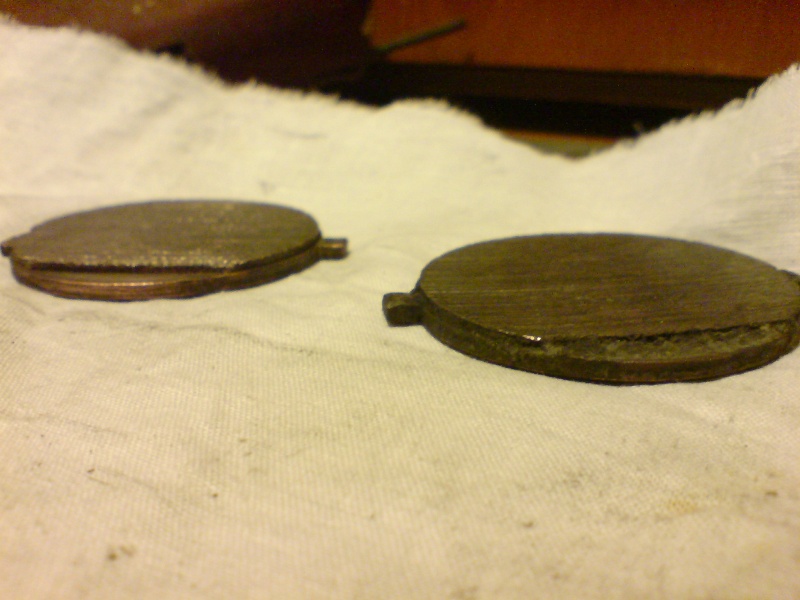 Матеріал основи - мідь. матеріал фрикційної накладки - якийсь сплав з міддю. А в основному на більшість байків накладки йдуть з матеріалу феродо.