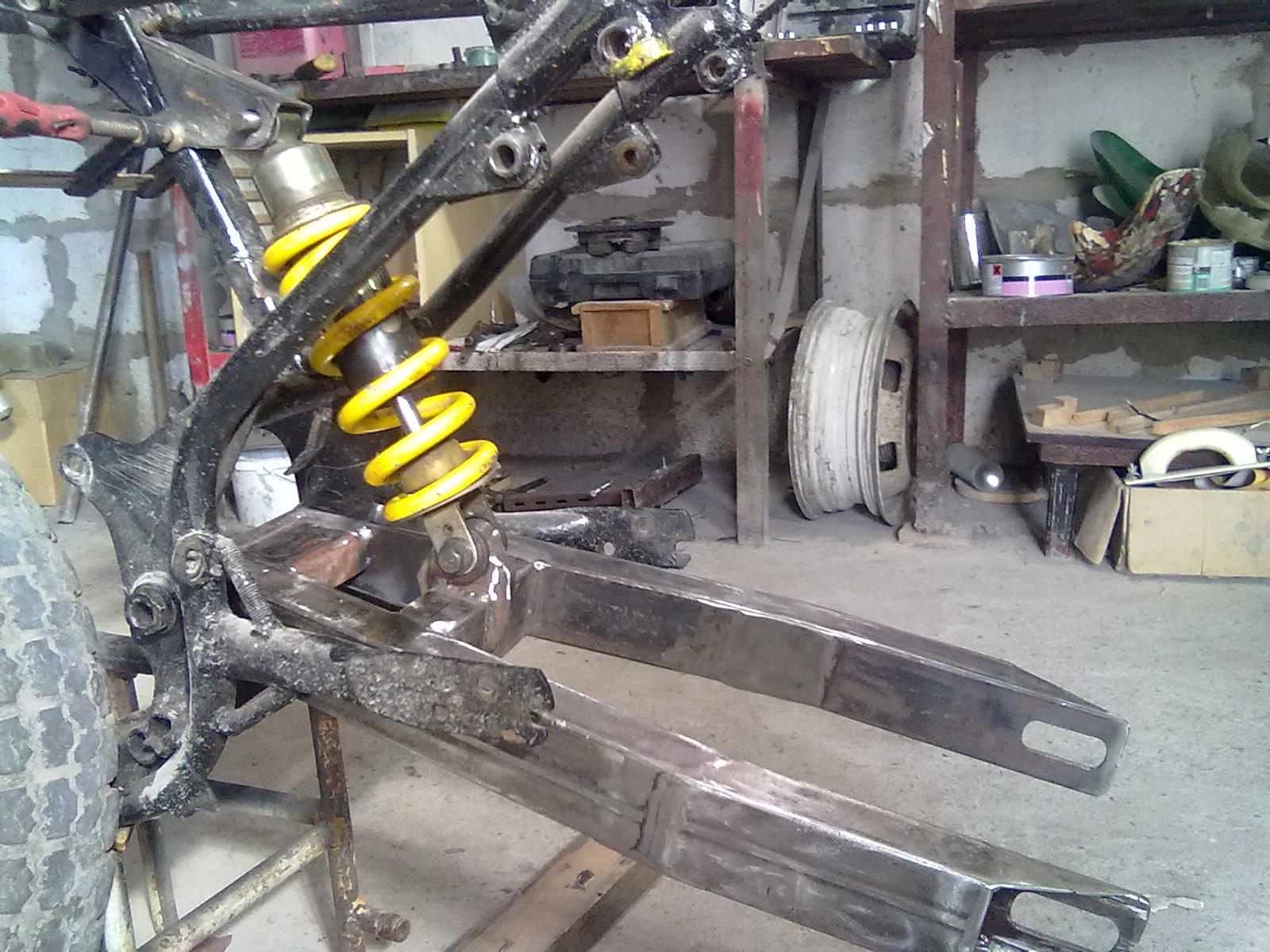 Маятник получается весом 3 кг. Материал- сталь.Дополнительно усилен профилем внутри.Ход и жесткость зависит от хода амортизатора и угла его наклона .На данном фото аморт от китайца ,ход с ним примерно 20 см..Крепление даннго маятника сделано под стандарт Явского.А так могу сделать хоть под втулки хоть под подшипник.