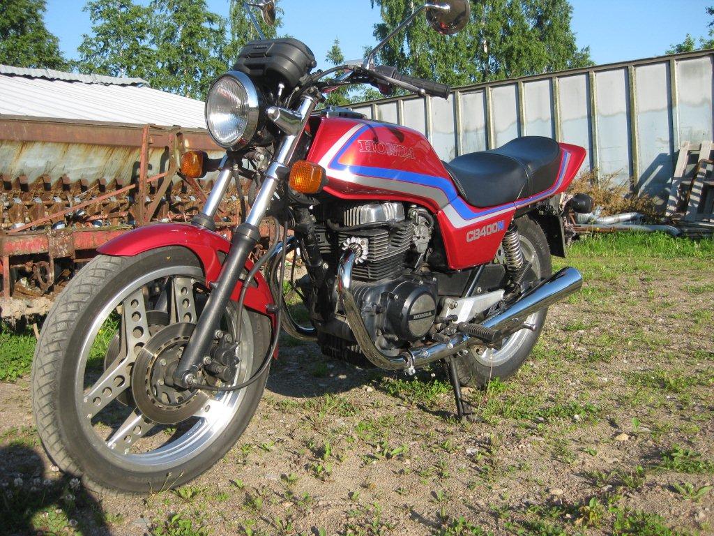 Fuel tank and side panels are re-sprayed in original color about 5 years ago. Frame etc. are in original paintwork. Exhaust's are new genuine Honda parts. Also a new "collector box" is in place. 43hp is enough for my needs. It can carry all the travel gears much more easily than MZ, and most importantly with much less fuel. :-) In Finland fuel price is now almost 2€/L. :x