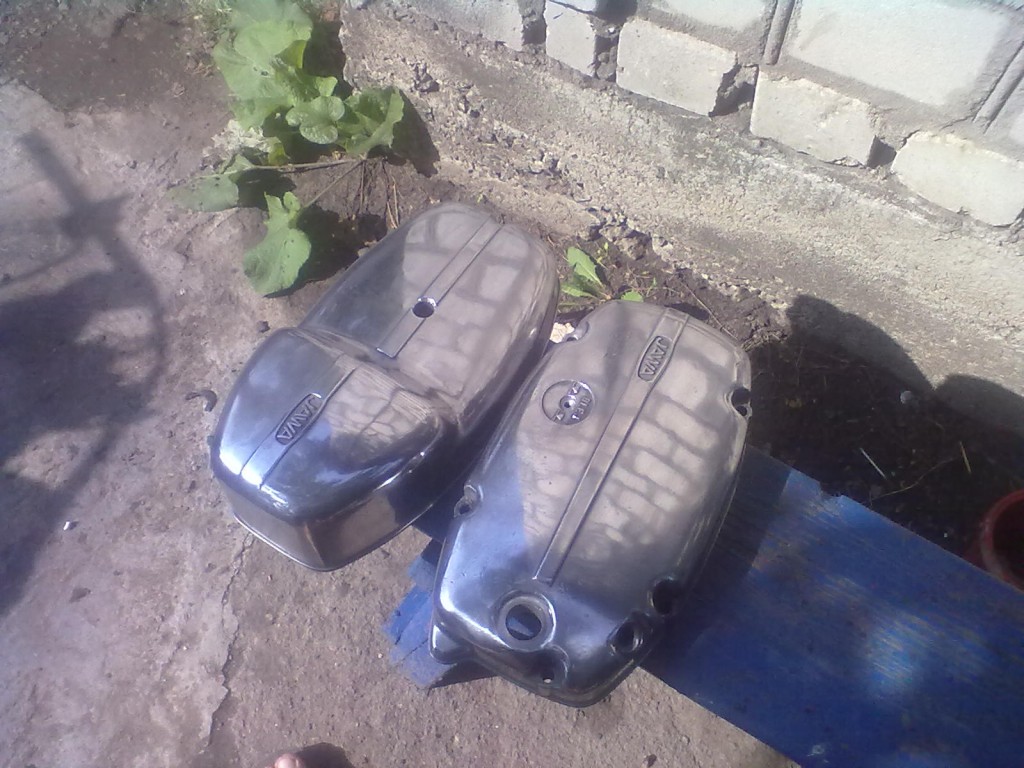 Здравствуйте, уважаемые ЯВОВОДЫ, вот решил и я показать вам свою "Белку":) на ваше обсуждение. Вся эта история началась год назад, весной, купил себе Минск, лишь бы задницу возить:) макака оказалась самой резвой и выносливой в нашем городке:) даже с весом пассажиров в 300 кг свои 120 она ехала спокойно без проблем. Но как сел на Яву своего друга, возил её на сварку, загорелся огромным желание купить себе это чудо Чешской техники. Осенью продал макаку, нашел себе вишневку за 1000 гривен, но купить не сложилось, кредит весел:) через пару месяцев оказалось что Ява была не его, а знакомого. Знакомый забрал её и я забил Яву на своё имя:) забрал её только этой весной уже за 700 гривен, но уже не заводилась так как зиму простояла на улице, пошли с другом посмотрели на неё, вернулись взяли мотоблок с прицепом, закинули Яву и в путь, притянули её домой и началось. Шаманил с проводкой, зарядки не давала, спустя неделю мучений завелась. Так как коробка уже была не очень, решил уже добить вилочки, а потом на кап.ремонт, намотал я на ней ещё три тысячи и осталась только первая и вторая скорости. 10 мая было принято решение колоть движок. Разобрал, приценился в деталях и в магазин. И так, было заменено- все сальники и прокладки, вилочки, шестерни коробки которые двигаются вилками(забыл как они называются), втулки вторичного вала, кольца поршневой, моторная цепь, диски сцепления и установлено 12 вольтовое оборудование с 638-й. Собирал два раза, так как первый раз имел дело с Явовским двигателем, не включались скоростя:) поставил двиг на раму, пару недель поездил, проверил всё ли нормально работает, и принял решение заняться внешним видом, разобрал до болтика, приобрел облицовку с 638, (она мне больше нравится) и понеслось четыре месяца неспешной работы, покраска в белый цвет, красил лично я, у бати в мастерской:) по ходу дела на работе точились всякие мелочи. Установлен новый карбюратор от 638, заказано у товарища Сирка составляющие БСЗ, ФУОЗ и оптодатчик, также тахометр и спидометр светодиодные. Установлен руль на клипонах.Не совсем законченый процесс, осталось ещё переварить резонаторы и можно кататься) Но ещё мелкие переделки остались, буду делать в процессе езды:) Планирую ещё поставить две фары с ваз 2106, сигнализацию, музыку:) Переднее крыло кастрировано, знаю, не кричите, досталось от предыдущего хозяина, да и оно мне по душе. Ну как вам? Только не бейте сильно:)