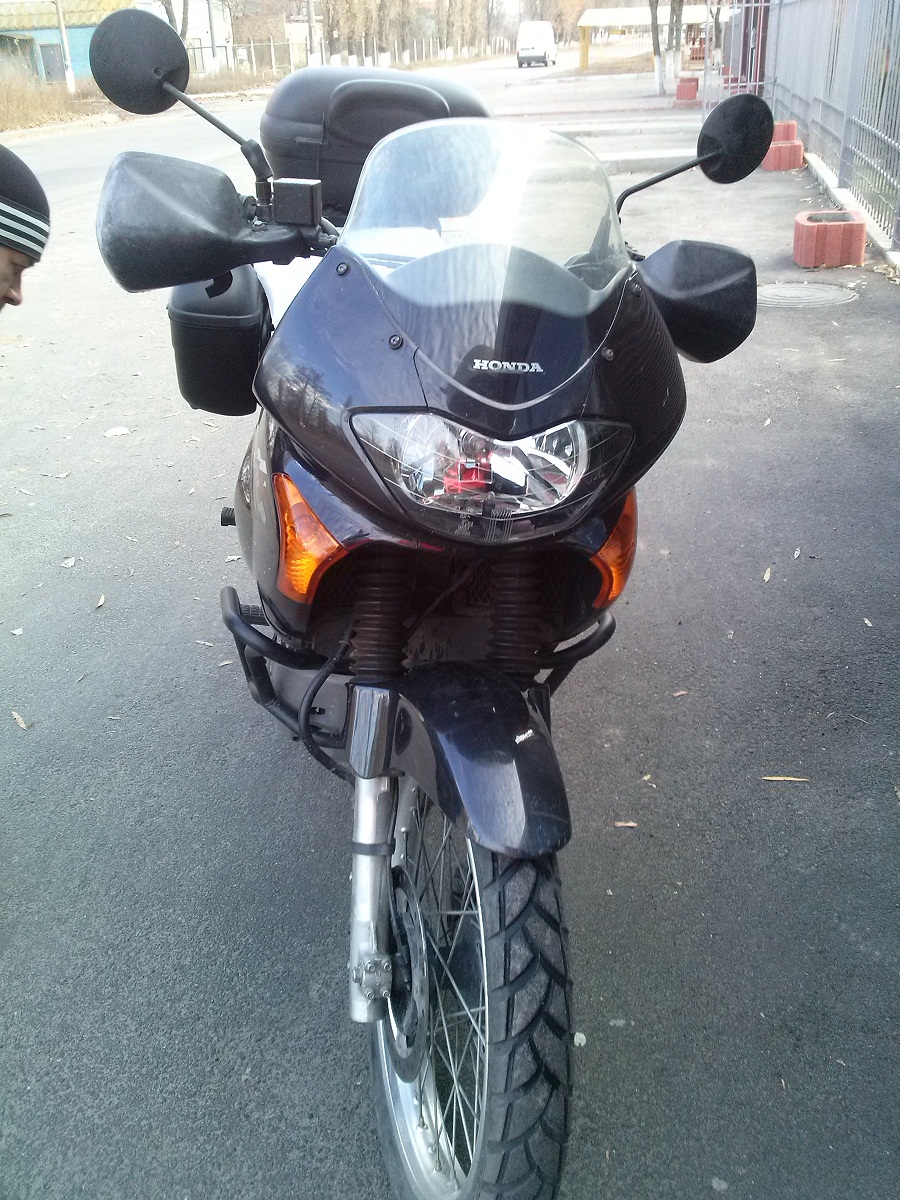 2000 год, пробег 27 тыс. (о том что родной или неродной спорить не буду, не силен). Предыдущий хозяин брал его с пробегом 19 тыс + в одной из книжек нашел отметку за 2006 год, где указан пробег 13 тыс. Из допов на мот установлены штатные рамки под боковые кофры+кофры GIVI, центральный CAPPA, центральная подножка и дуги. В придачу так же высокое ветровое туринговое стекло.