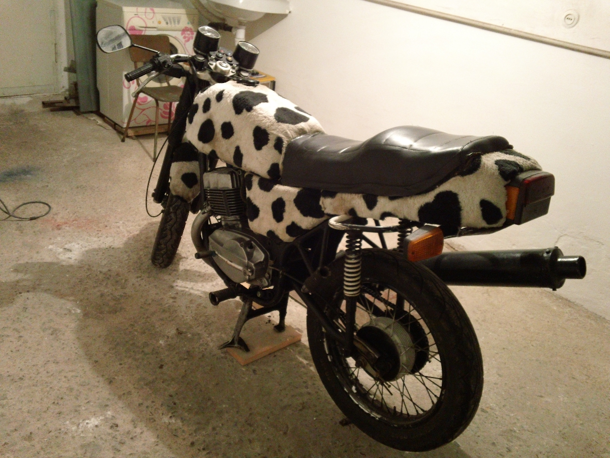 Я бы хвост по короче сделал, ну во первых он того же размера что и родной у явы был, а во вторых я расчитывал кататься с женой и когда сидит два человека, как раз оптимальный вариант, на спину не лезит!