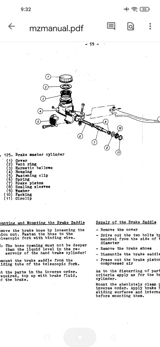 Привет! В суппорте стоит два поршня - алюминиевые, анодированные. Колодки крепятся на две оськи с проточками и прижимаются фигурной крестообразной пружиной, плюс пластиковая крышка. Пыльники подходят с ремкомплекта от "Москвича" 2140. На олх продают комплект тормозов на MZ.