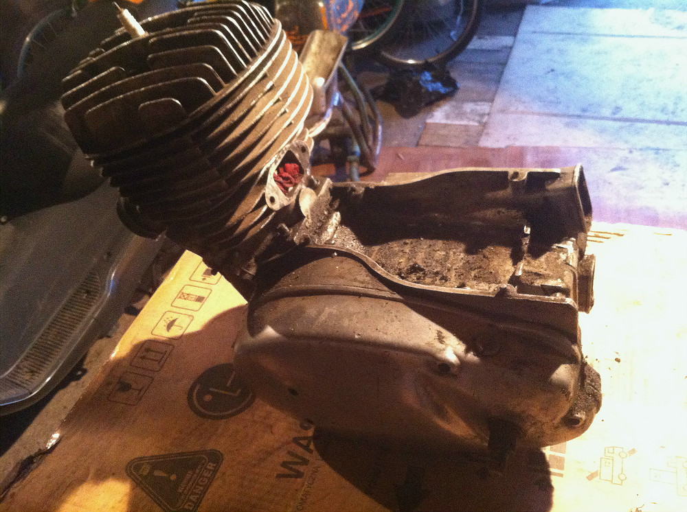 циліндр,головка циліндра була пофарбована серебрянкою поверх болота, піскоструй брати не хотів, тому це все діло наждачками(Головку геть на роботу брав :) ), шпателями, ножиками чистив, шліфував, а в кінці все відпіскоструїв, не забувши і про картер) IMG_1096.jpg IMG_1097.jpg