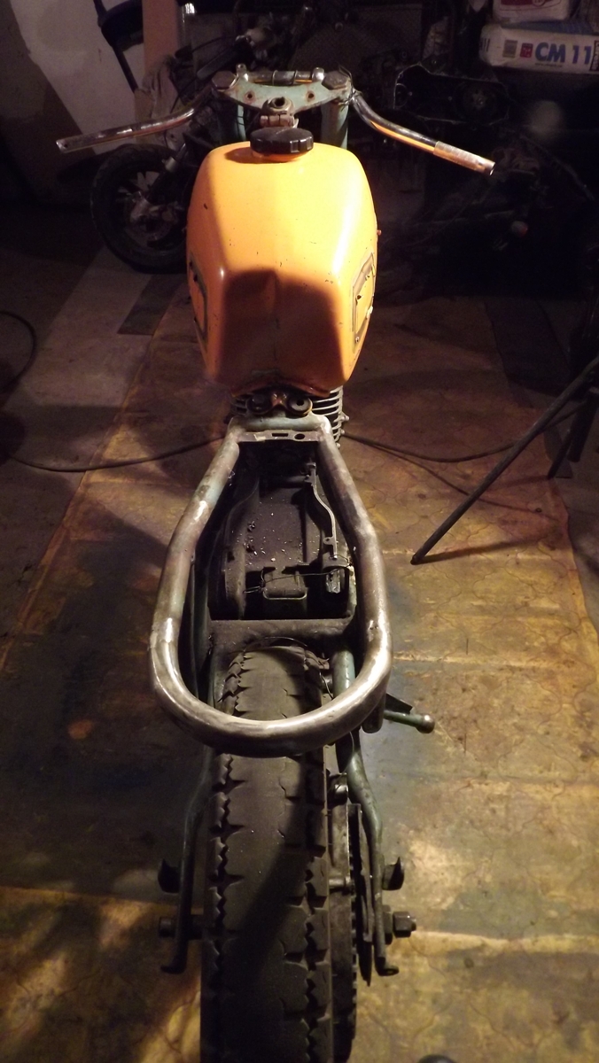 Тут ви можете побачити номерний знак мота, Був він наче після аварії, але молоточком, зубилами, потихеньку якось вирівняв.